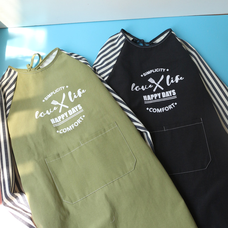 新款围裙长袖家用厨房防水防油韩版时尚带袖大人反穿衣帆布女罩衣