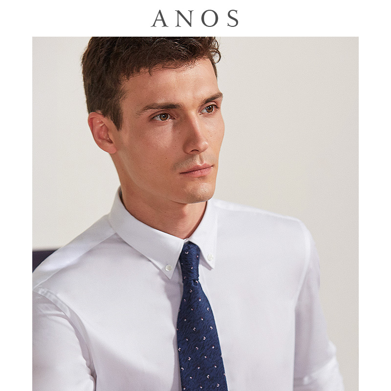 anos免烫易打理扣领棉质混纺衬衣