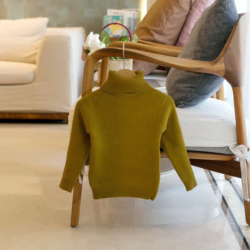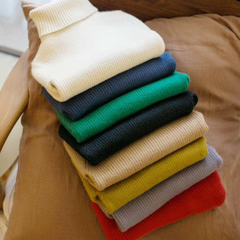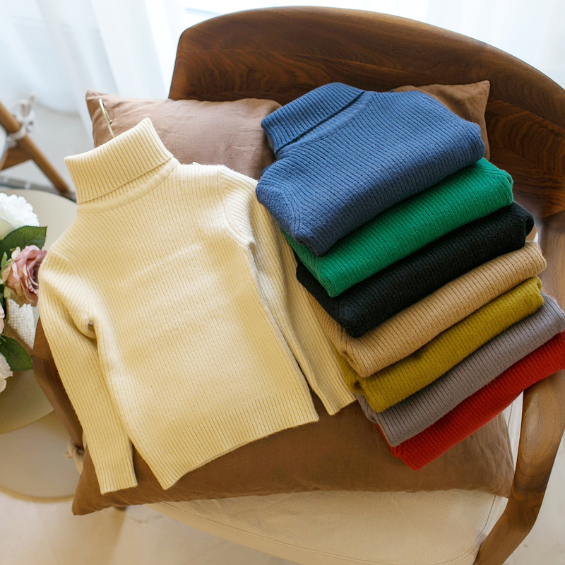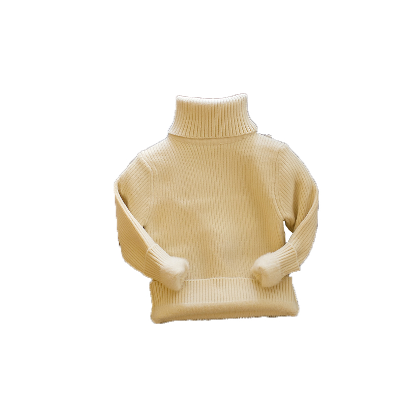 男童女童冬季加绒加厚毛衣套头儿童纯色内搭针织宝宝一体绒毛线衣