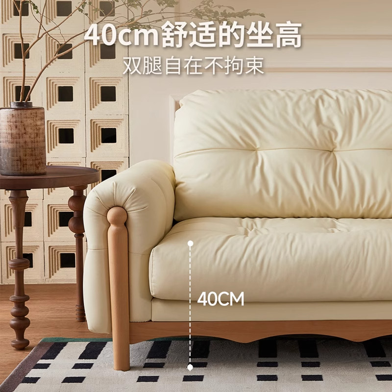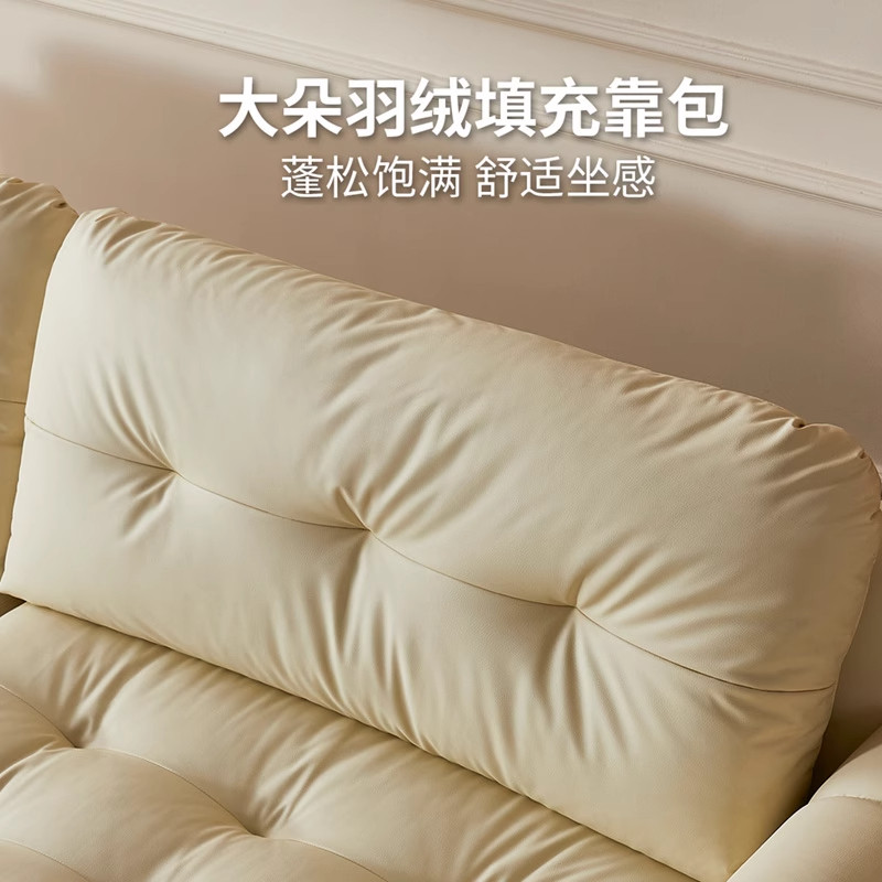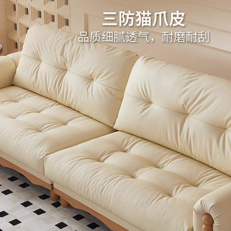 顾家家居实木榉木实木奶油风简约轻奢家用客厅猫抓皮羽绒直排沙发