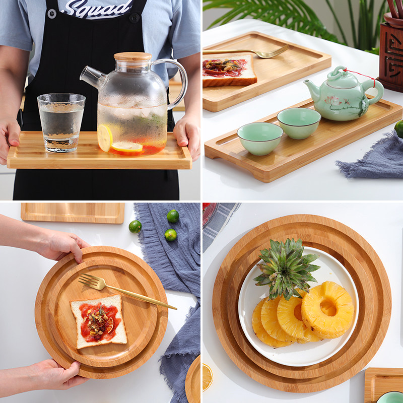 竹制托盘餐盘长方形圆形盘木质茶杯托盘竹木茶具家用木制水果盘子