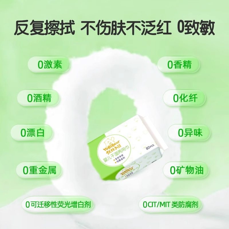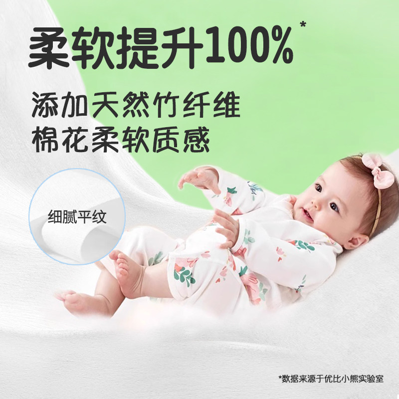 优比小熊婴儿洗脸巾纯植物棉柔巾宝宝专用干湿两用巾加厚平纹80抽
