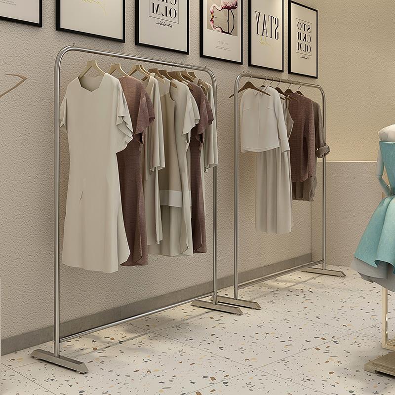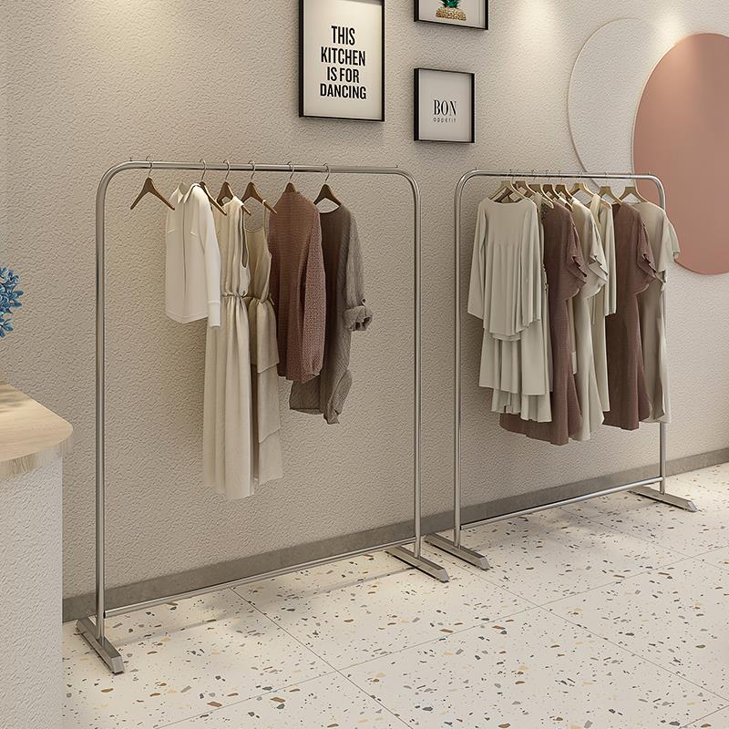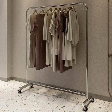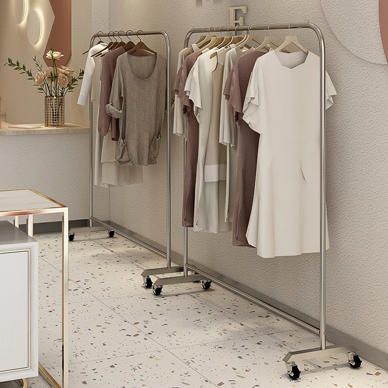 不锈钢落地衣架女服装展示架上墙挂衣吊杆龙门专用晾货架移动带轮