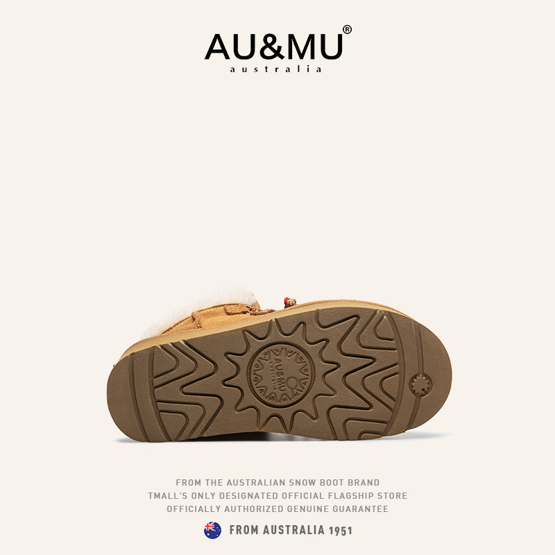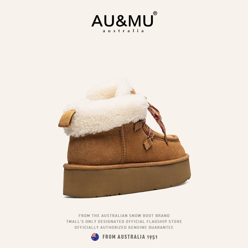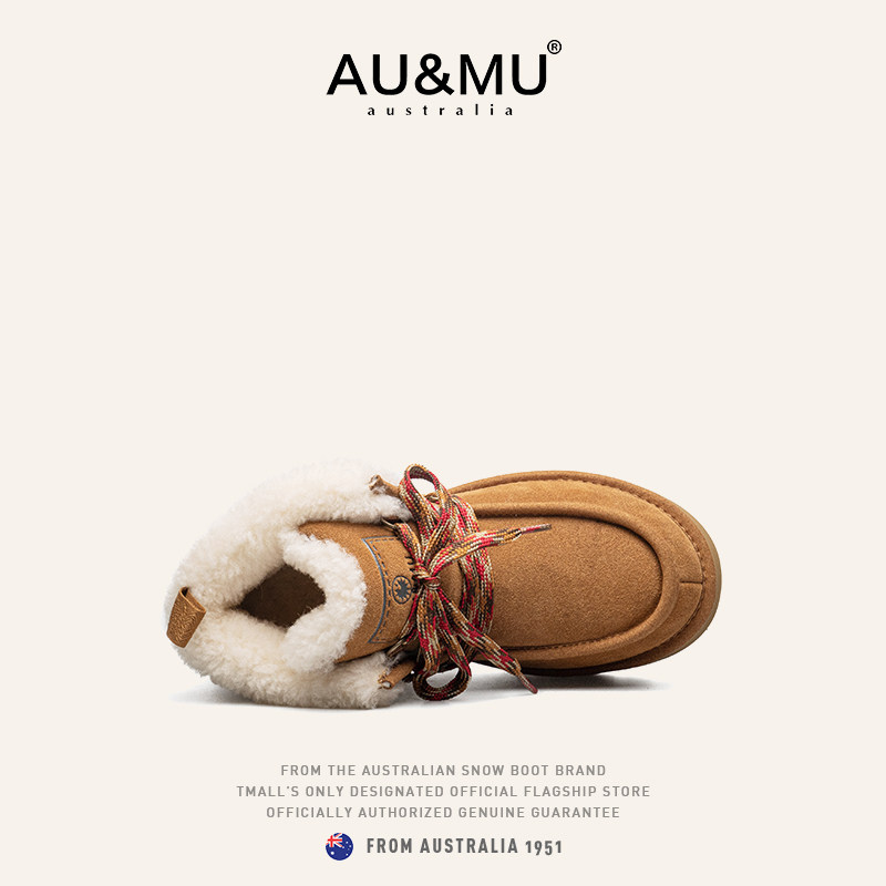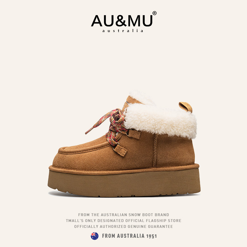AUMU翻毛短筒雪地靴 真羊皮毛一体 2025新款冬季绒加厚底内增高女
