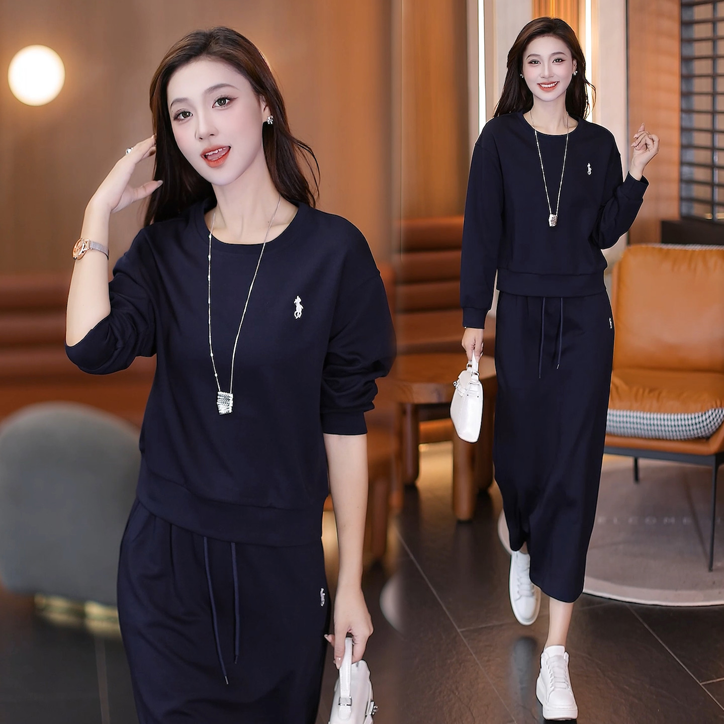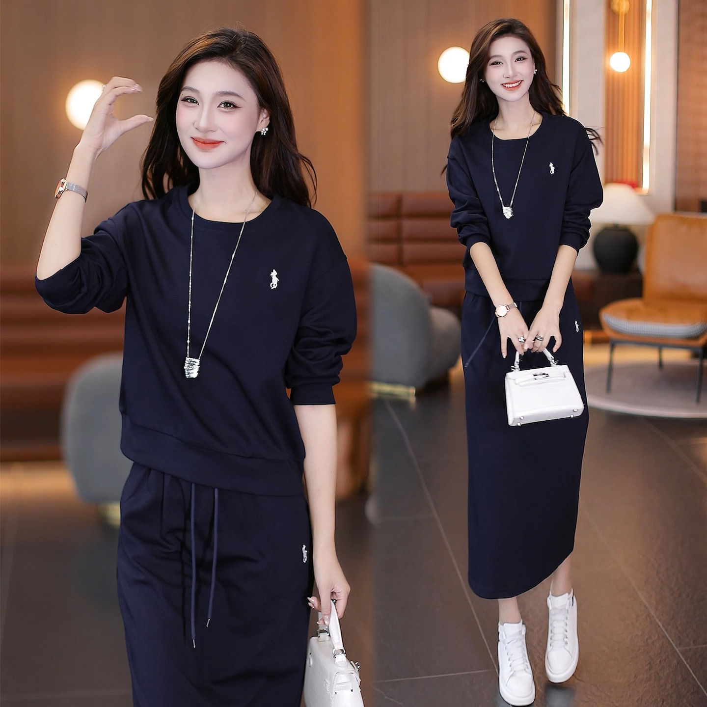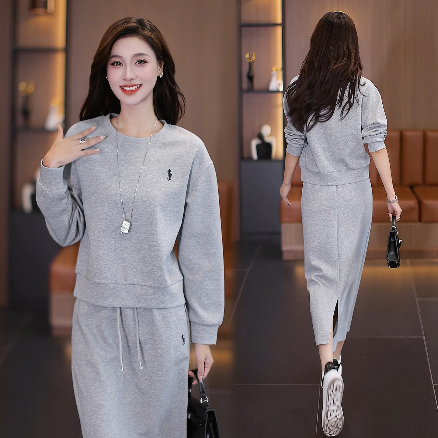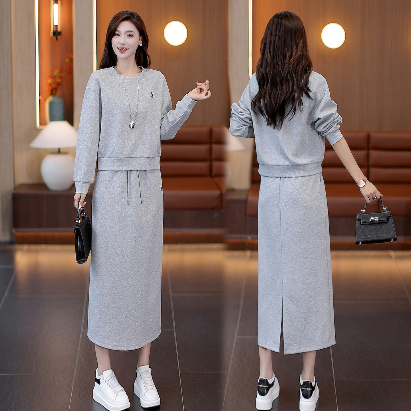 休闲风圆领卫衣套装女秋季新款宽松洋气显瘦半身裙时尚优雅两件套