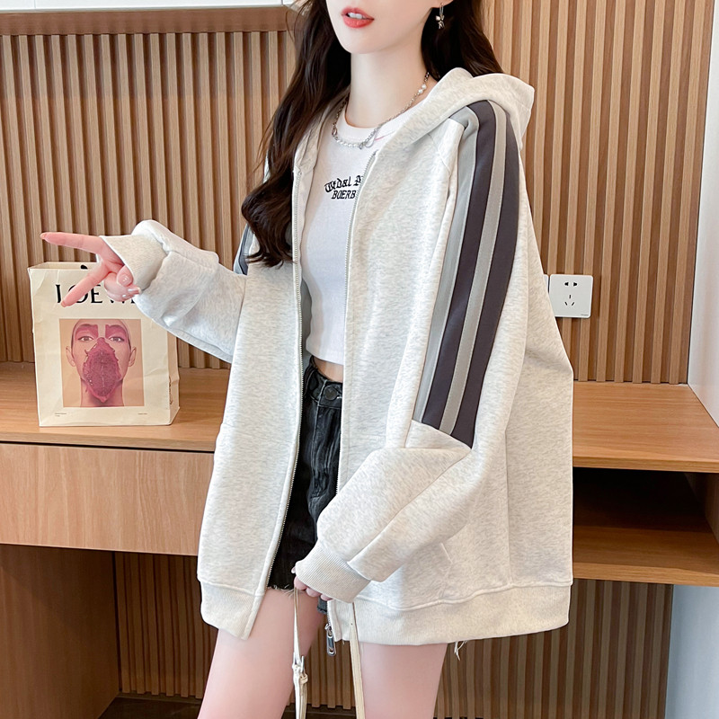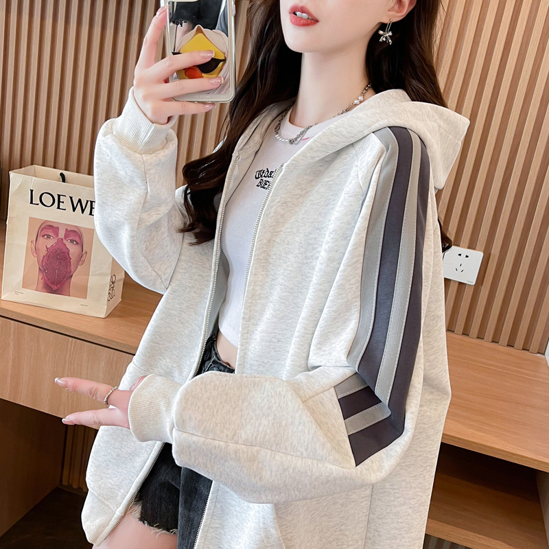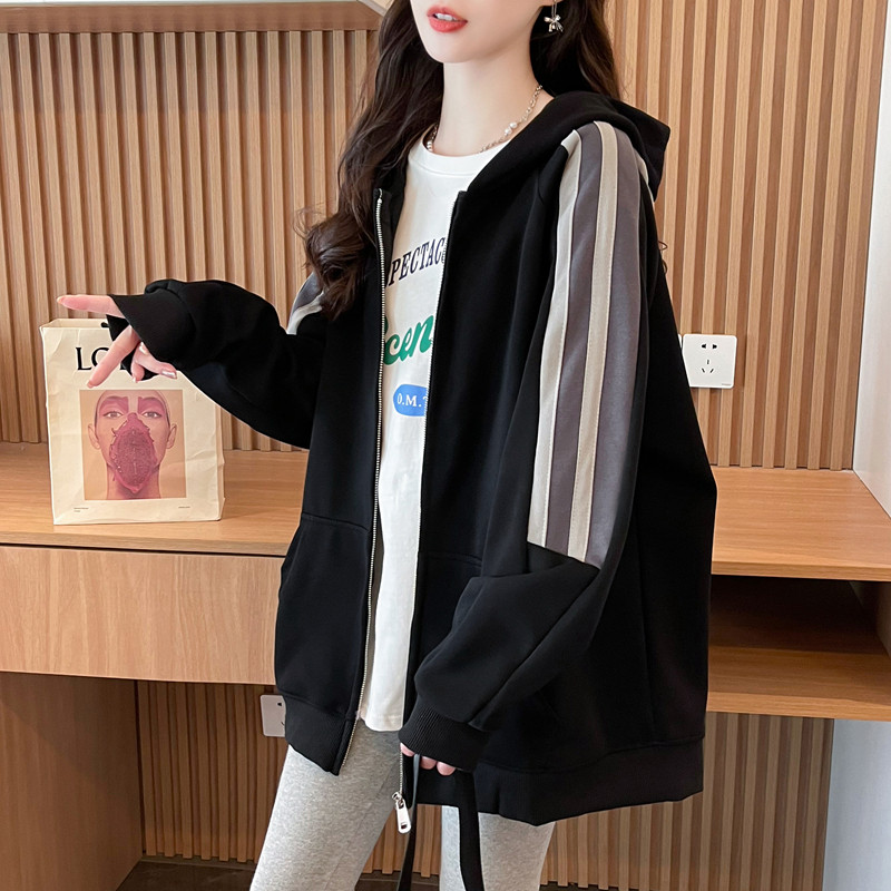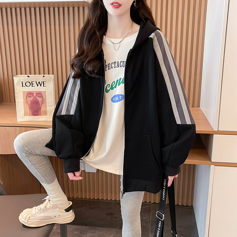 大码女装胖mm慵懒风拉链卫衣女春秋新款韩版宽松百搭薄款开衫外套