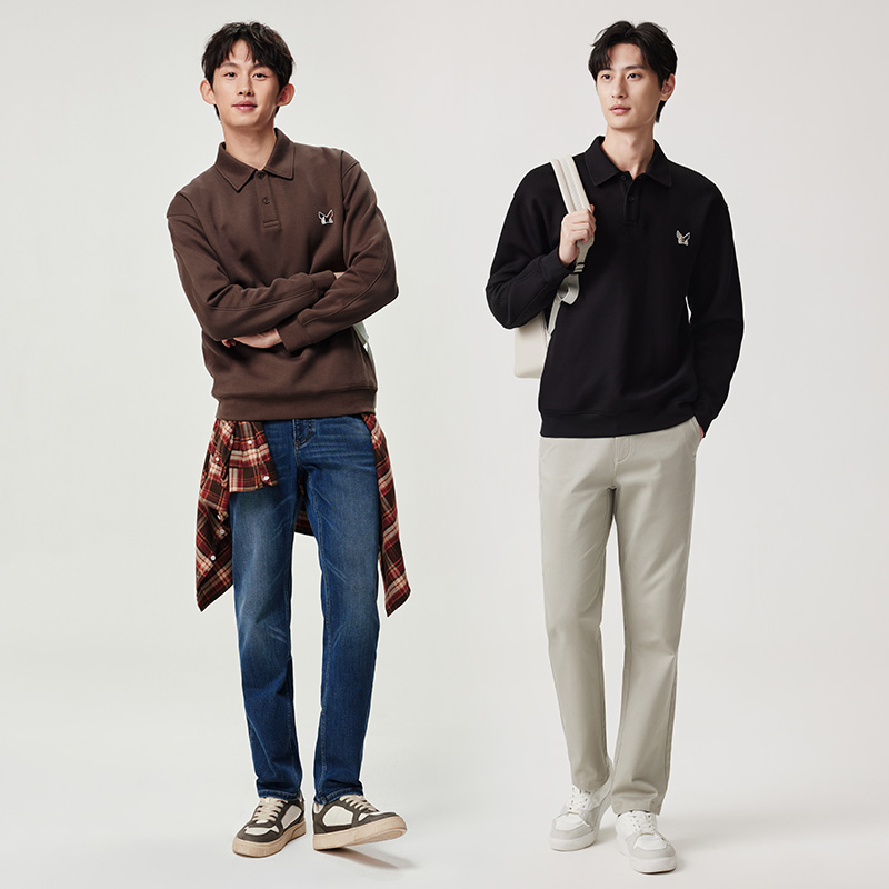 【远红外蓄热】九牧王2025秋冬新款情侣男女同款翻领polo卫衣外套
