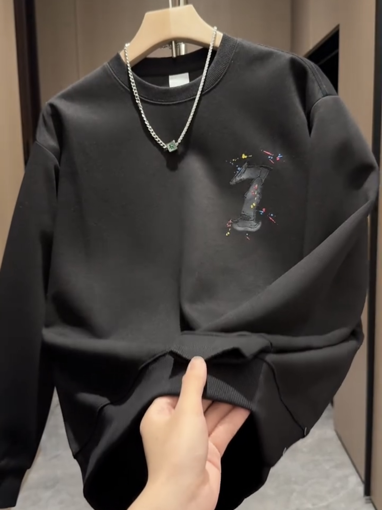 高端圆领套头卫衣男秋季新款刺绣休闲长袖衣服印花宽松打底衫T恤