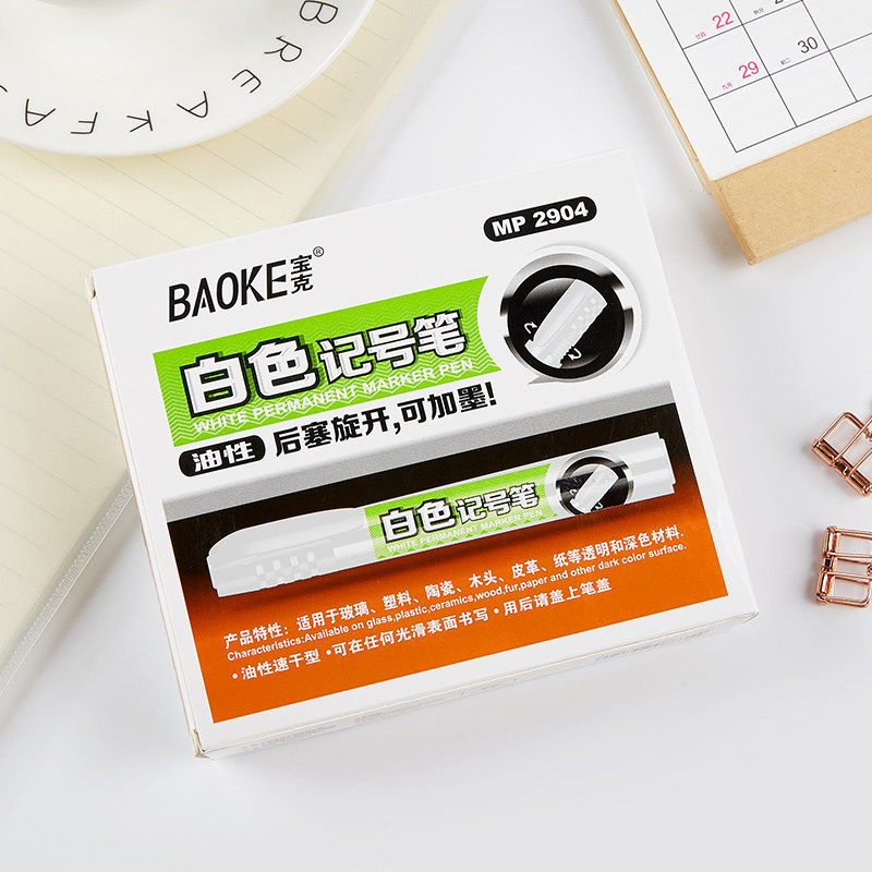 宝克MP2904白色记号笔 可加墨水 油性白色笔 标记笔大头笔