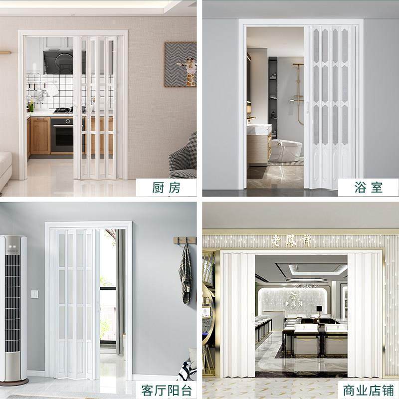 PVC折叠门家用厨房门开通燃气临时门卫生间隐形隔断推拉门无轨道