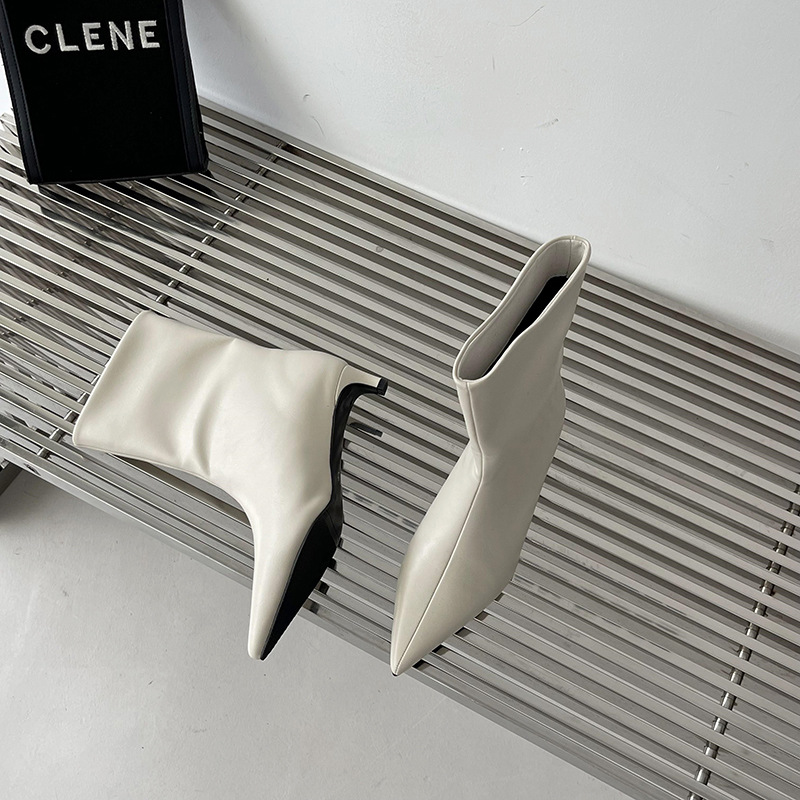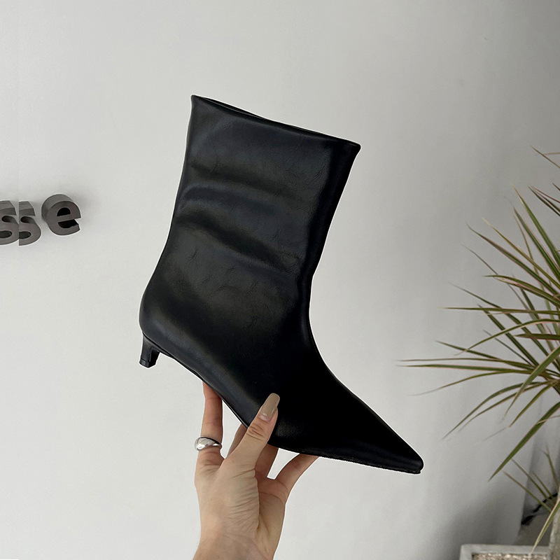2025年秋冬季新款简约大牌范短筒时装低跟靴子时髦尖头套筒短靴