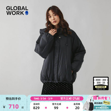 GLOBAL WORK 羽绒服女2025冬季新款连帽抽绳保暖纯色厚外套495695