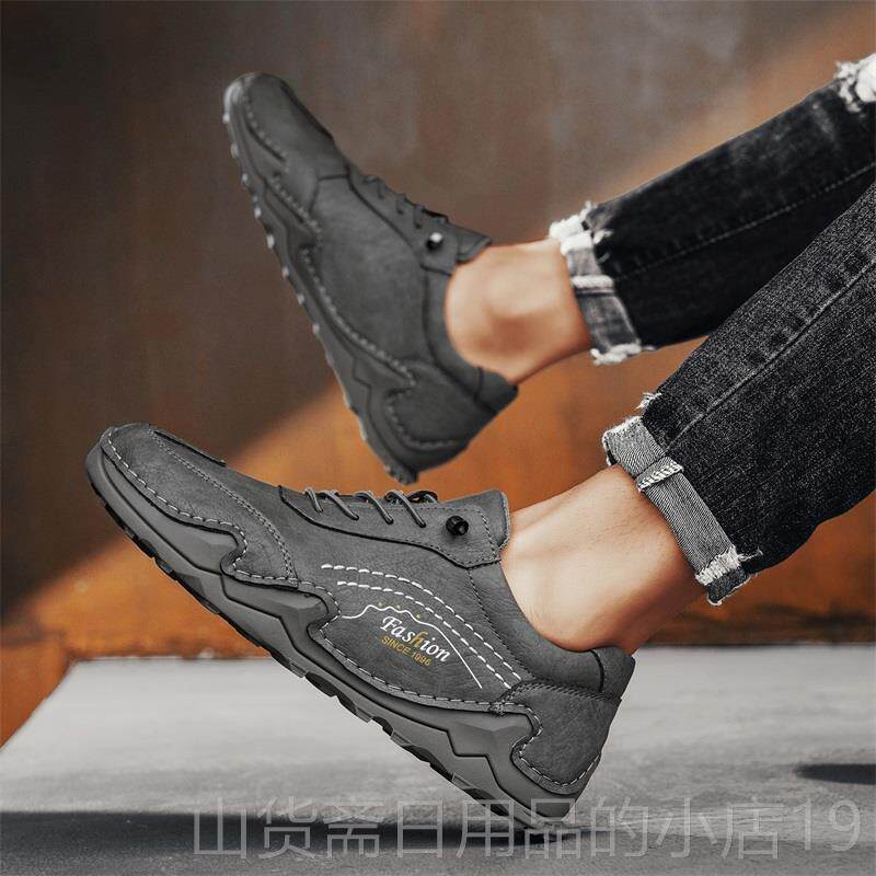 高档捡漏清仓皮鞋潮百休搭闲鞋韩版真皮户外运动鞋男男流防滑耐磨