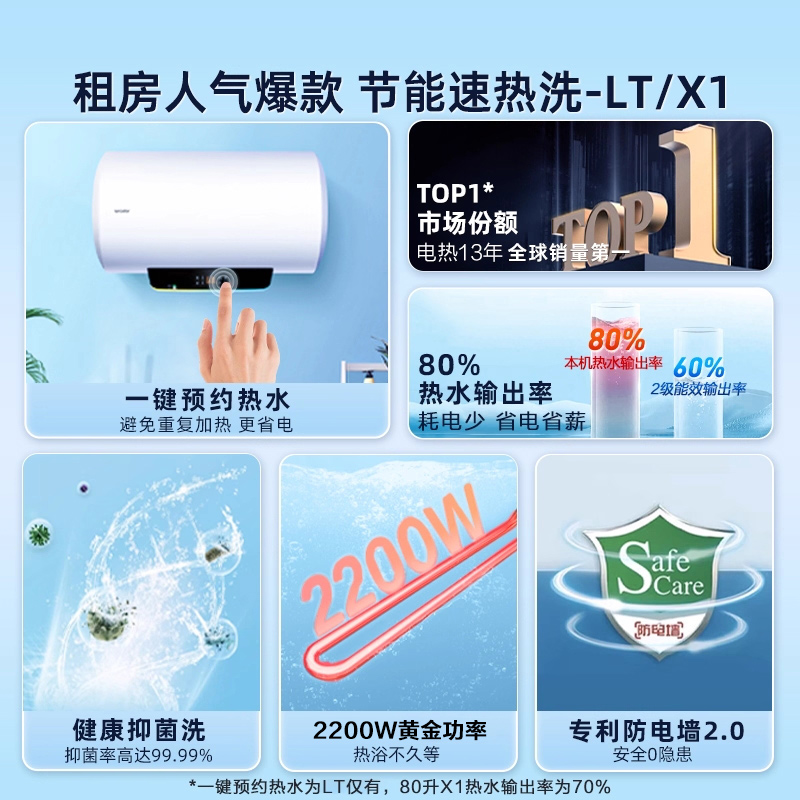 海尔智家统帅电热水器官方家用厨宝出租房卫生间洗澡恒温40升LT