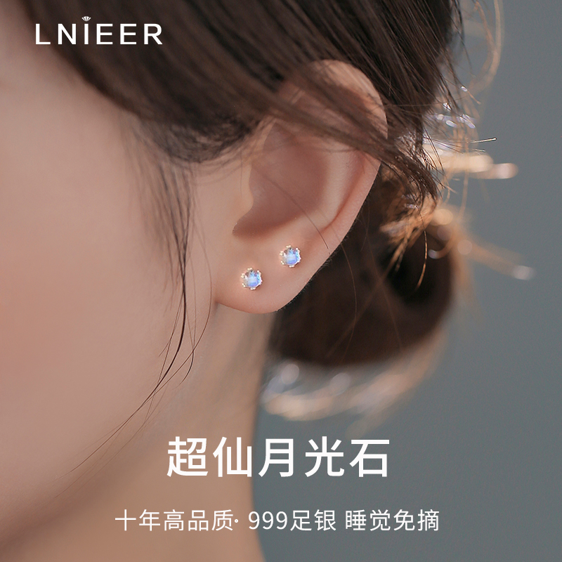 999纯银月光石耳钉女螺丝拧扣耳棒养耳洞2025新款耳环耳骨钉耳饰
