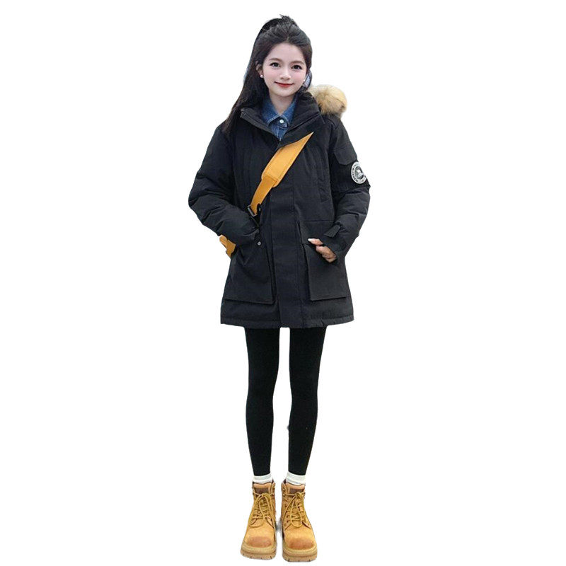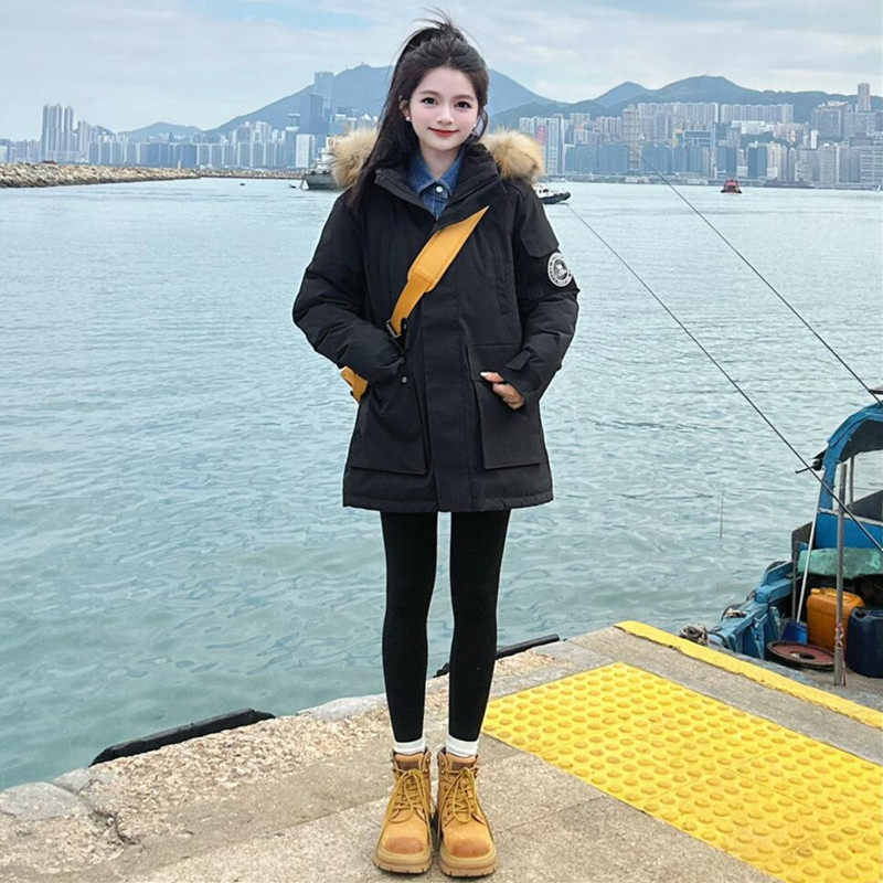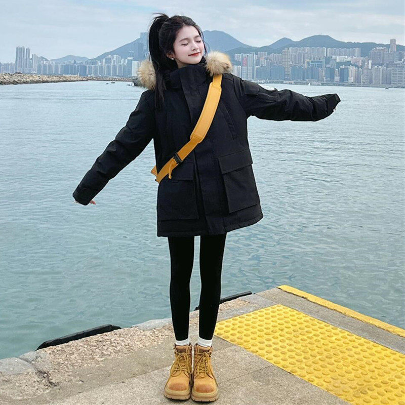 晶煊情侣工装大毛领连帽派克棉服