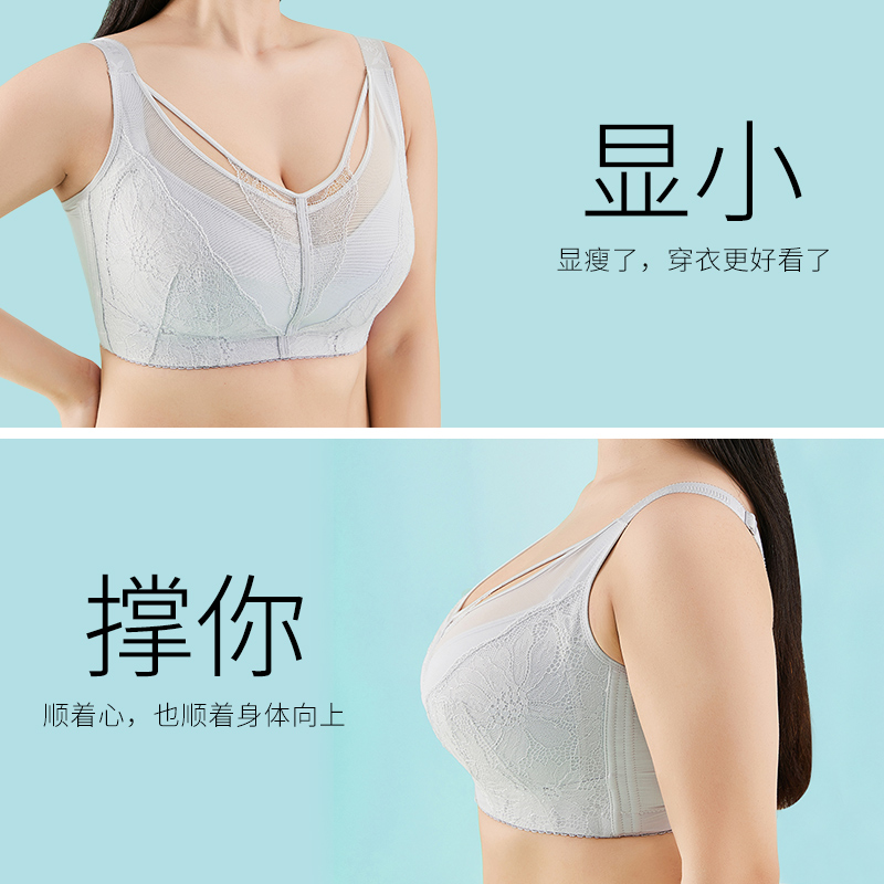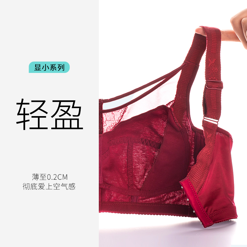大胸显小红内衣防下垂大码胖mm女薄款全罩杯收副乳胸罩无钢圈文胸