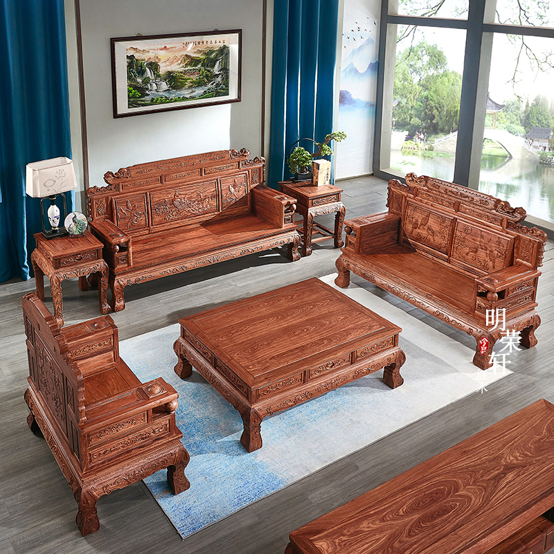 明荣轩红木家具刺猬紫檀财源滚滚沙发古典中式客厅花梨实木组合