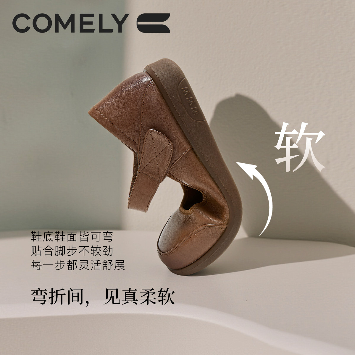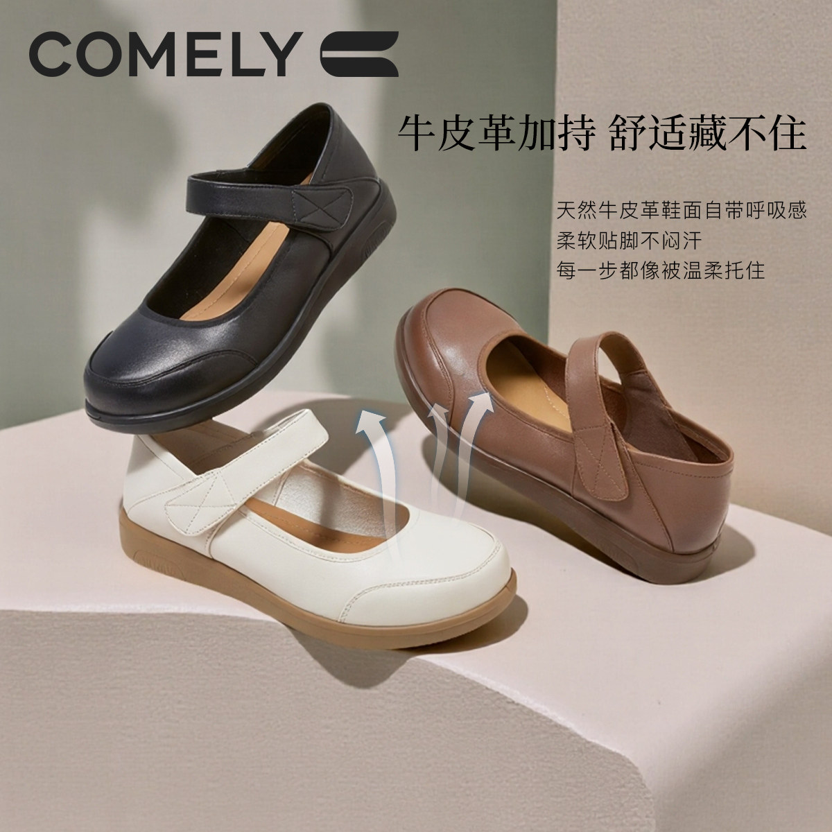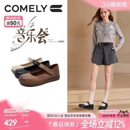 康莉真皮妈妈鞋女2025年秋季新款魔术贴玛丽珍鞋平底单鞋商场同款