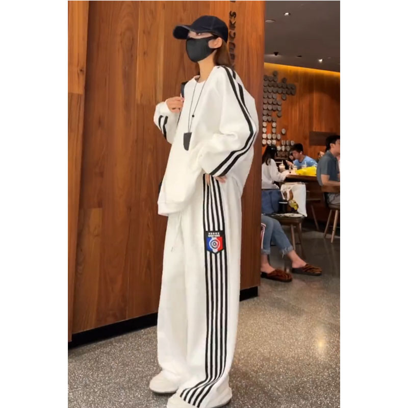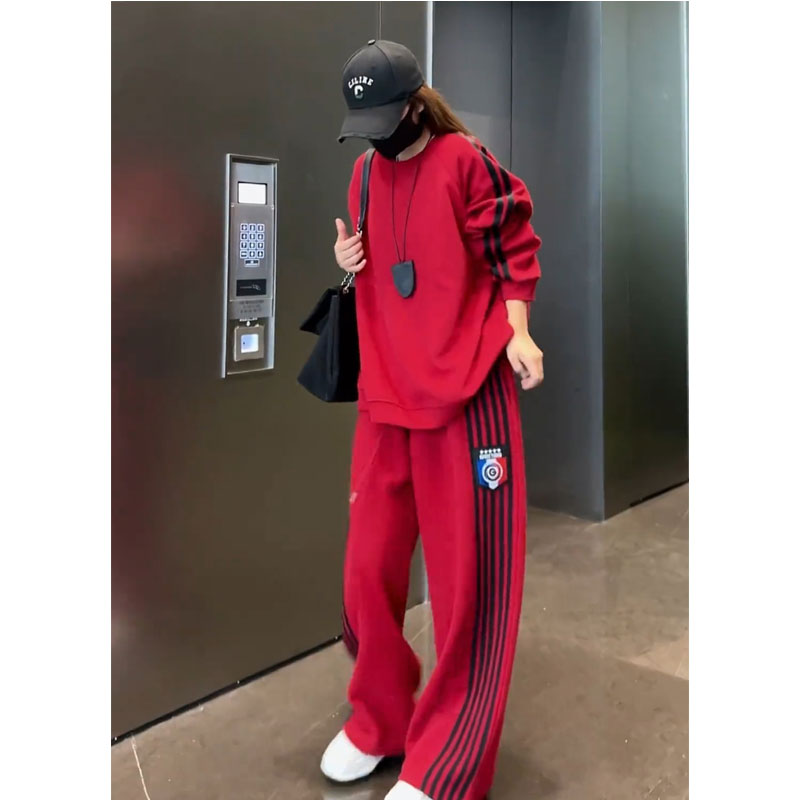 韩系温柔气质套装女2025秋冬新款设计感圆领卫衣阔腿卫裤两件套装