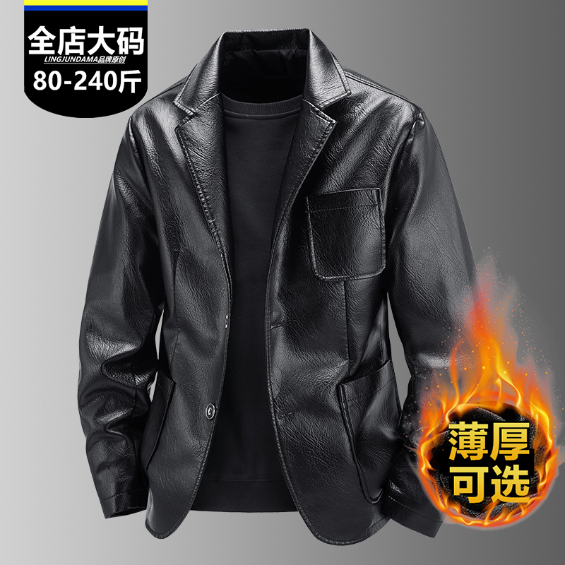 秋季新款大码男士西装皮夹克商务休闲加肥加大皮衣成熟胖男生外套