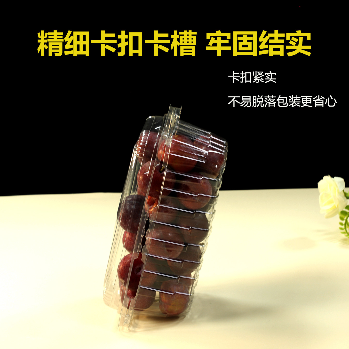 一次性水果盒卡扣带盖果切盒子0.5-4斤车厘子1斤装透明水果打包盒
