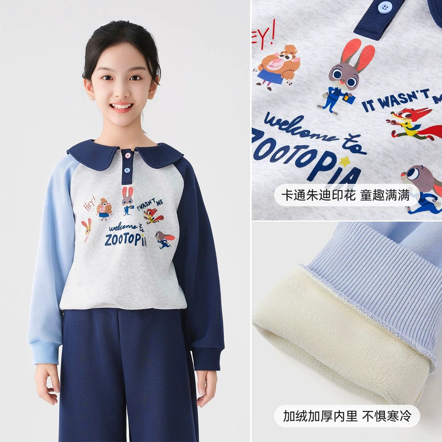 正品迪士尼疯狂动物城女童加绒打底衫2025新款卫衣校园运动上衣