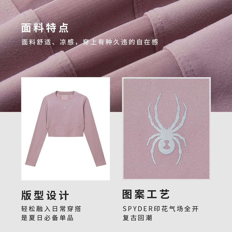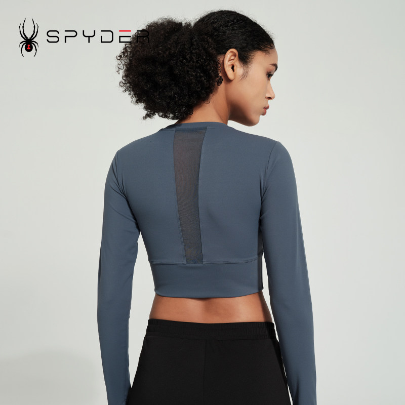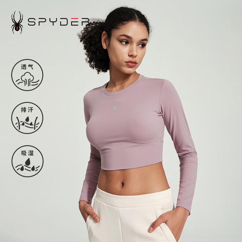 SPYDER蜘蛛春夏女子健身运动紧身弹力露脐长袖上衣瑜伽服24CS408W