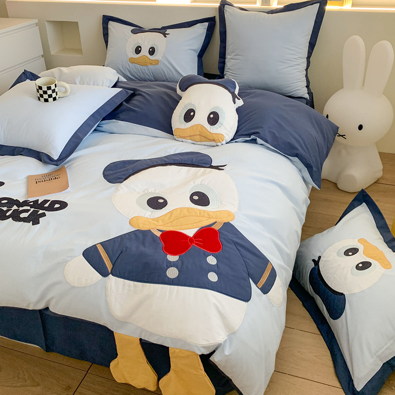 唐老鸭100全棉儿童床上四件套纯棉床单被套卡通三件套男女孩床品4