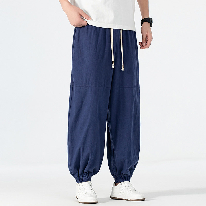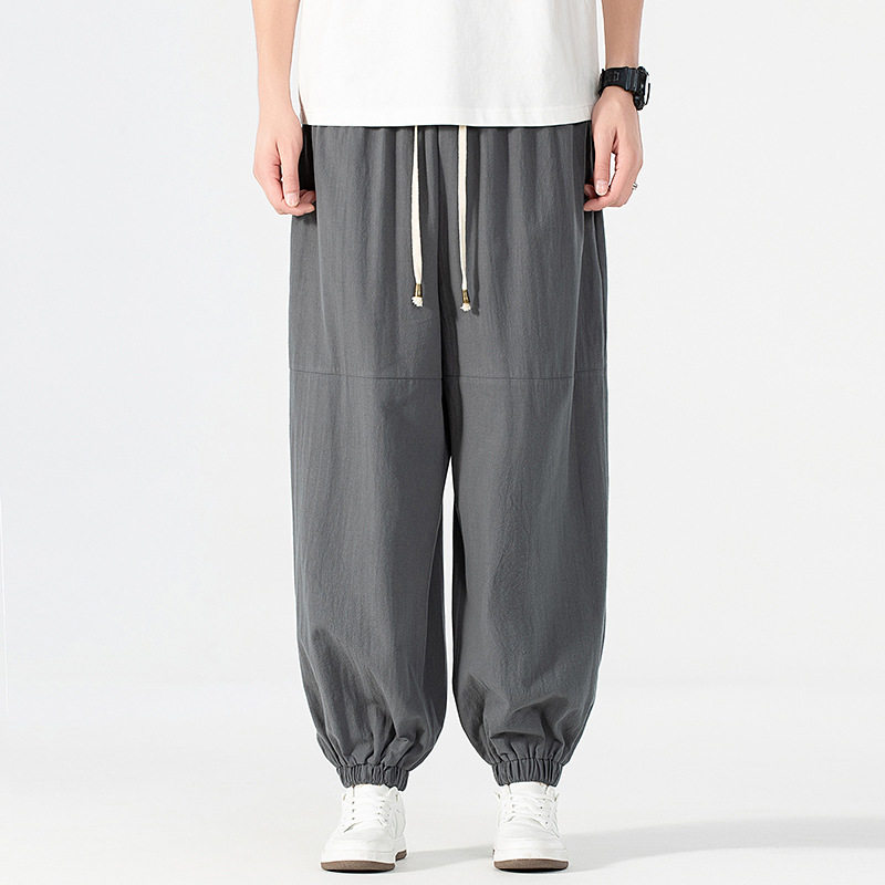 300斤特大码亚麻裤肥佬胖人阔腿超肥大号束脚裤中国风棉麻太极裤