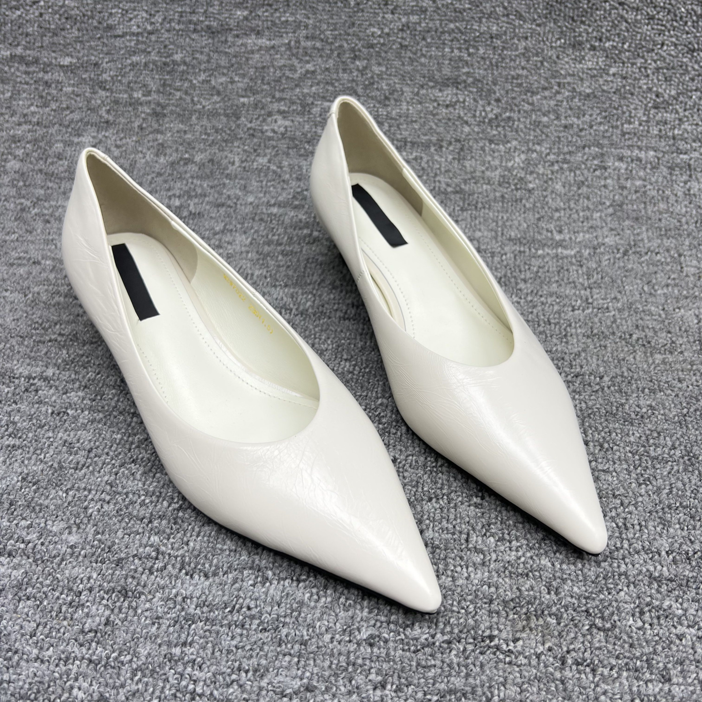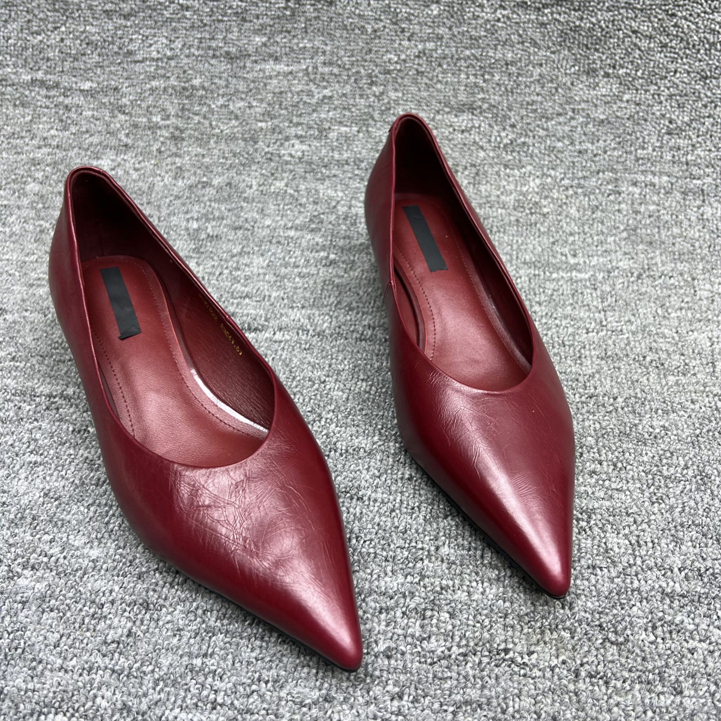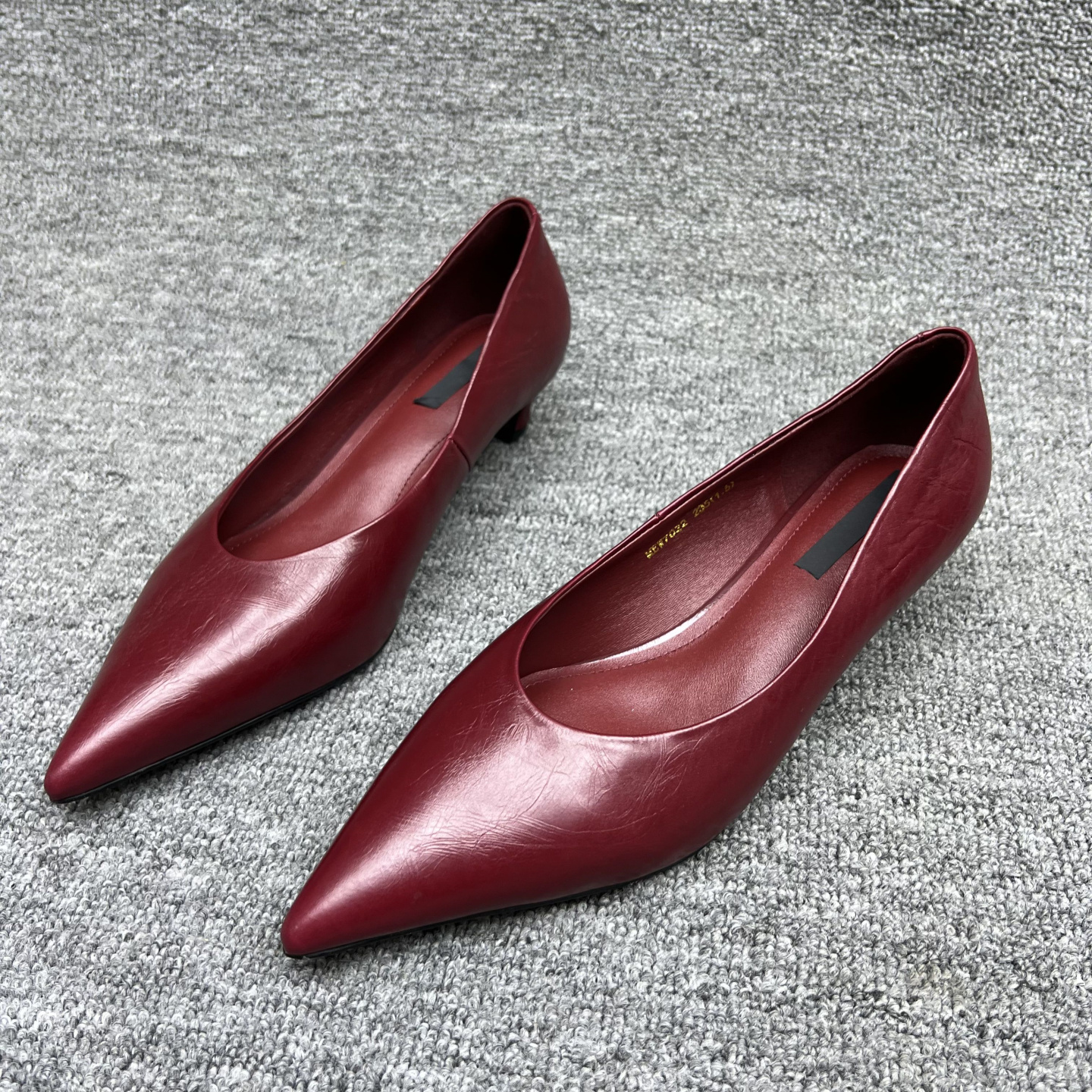 真皮胎牛皮浅口尖头细跟高跟鞋女