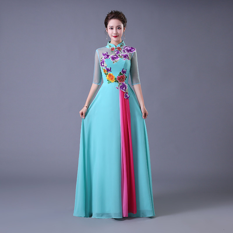 合唱团服装群舞姐妹装演出服高级定制女歌颂合唱服现代长裙独礼服
