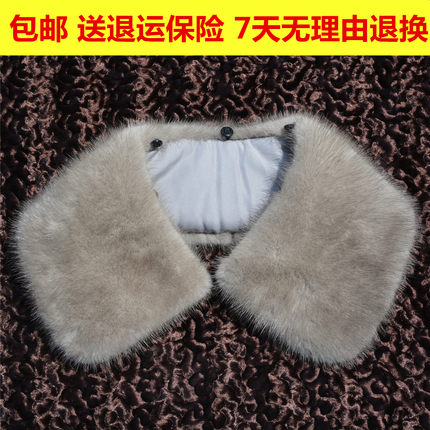 冬整皮水貂毛领子男女通用方领尼克服棉服真皮大翻领保暖毛领单卖