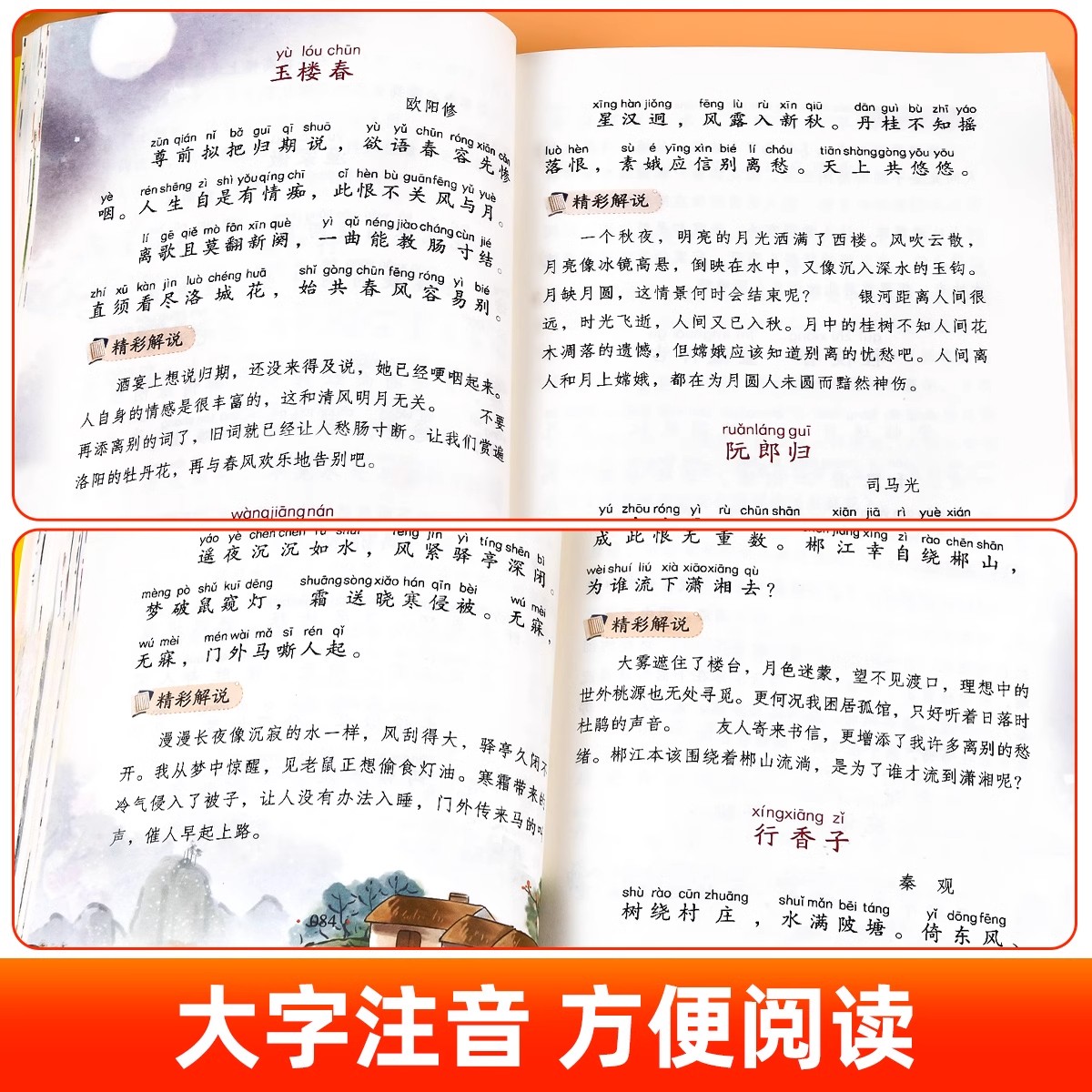 唐诗三百首和宋词三百首幼儿早教小学生彩图注音版完整版正版全集儿童版小学生老师推荐一二年级课外阅读书必背的学习读物300首