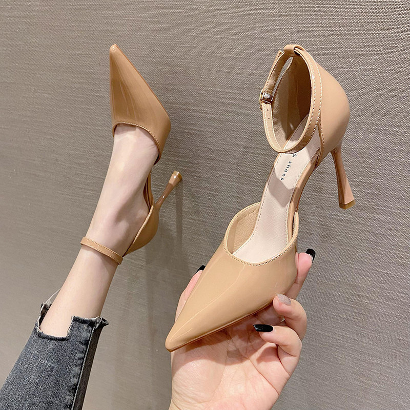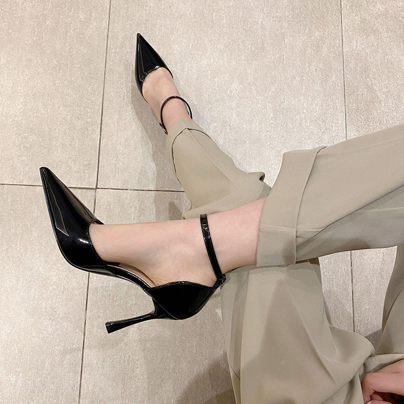 2025年夏新款百搭中空职业高跟鞋女细跟尖头黑色工作性感包头凉鞋