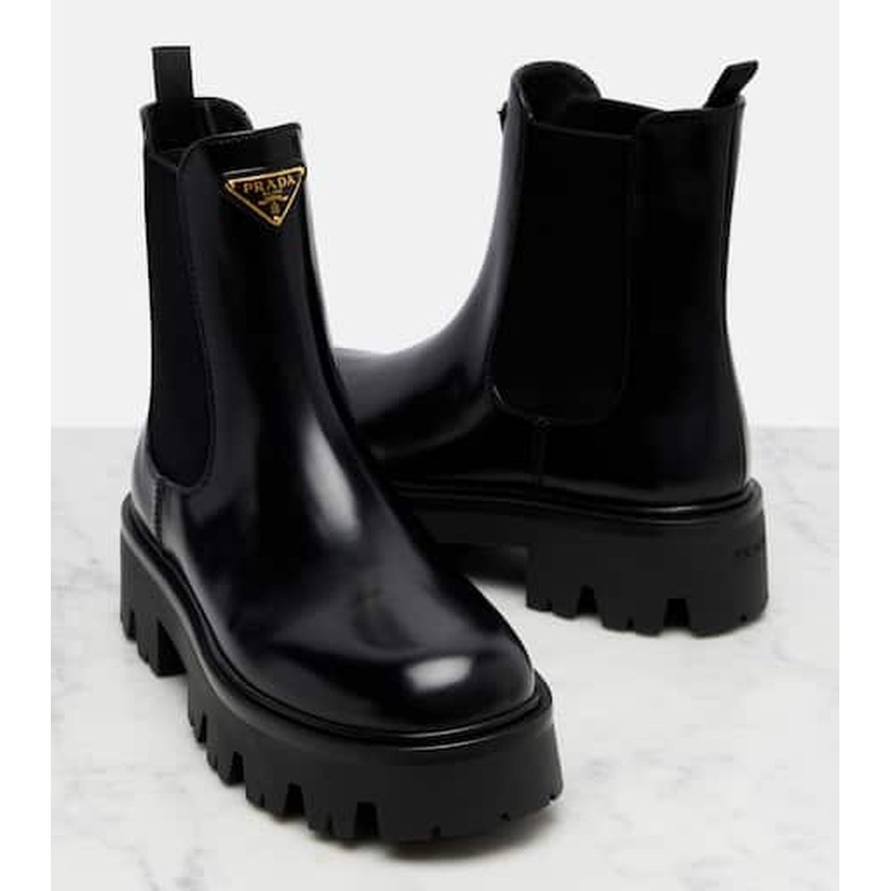 1h可退 香港直邮Prada 普拉达 女士 50 皮质防水台切尔西靴短靴