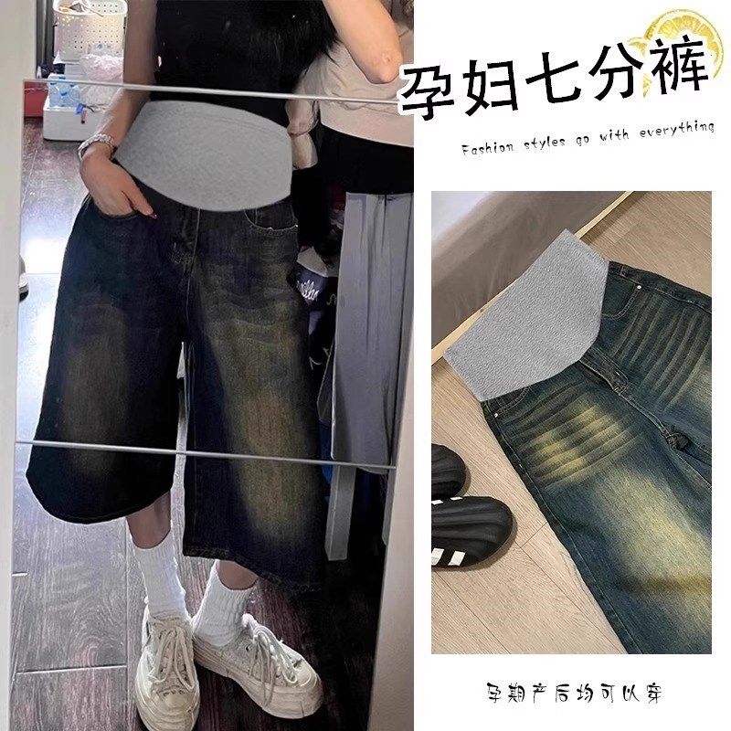 孕妇裤子夏季薄款外穿七分牛仔裤2025新款不勒肚子打底阔腿裤夏装