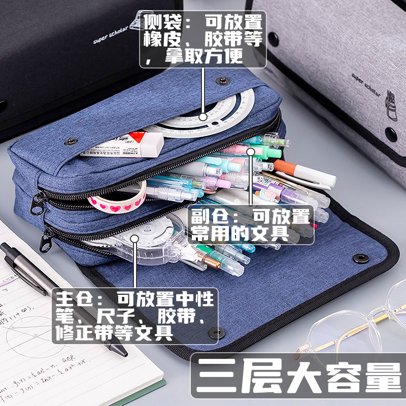 笔袋男生帆布大容量多层分隔铅笔盒ins高颜值创意简约女大学生高初中生日系文具盒小学生多功能文具袋铅笔袋