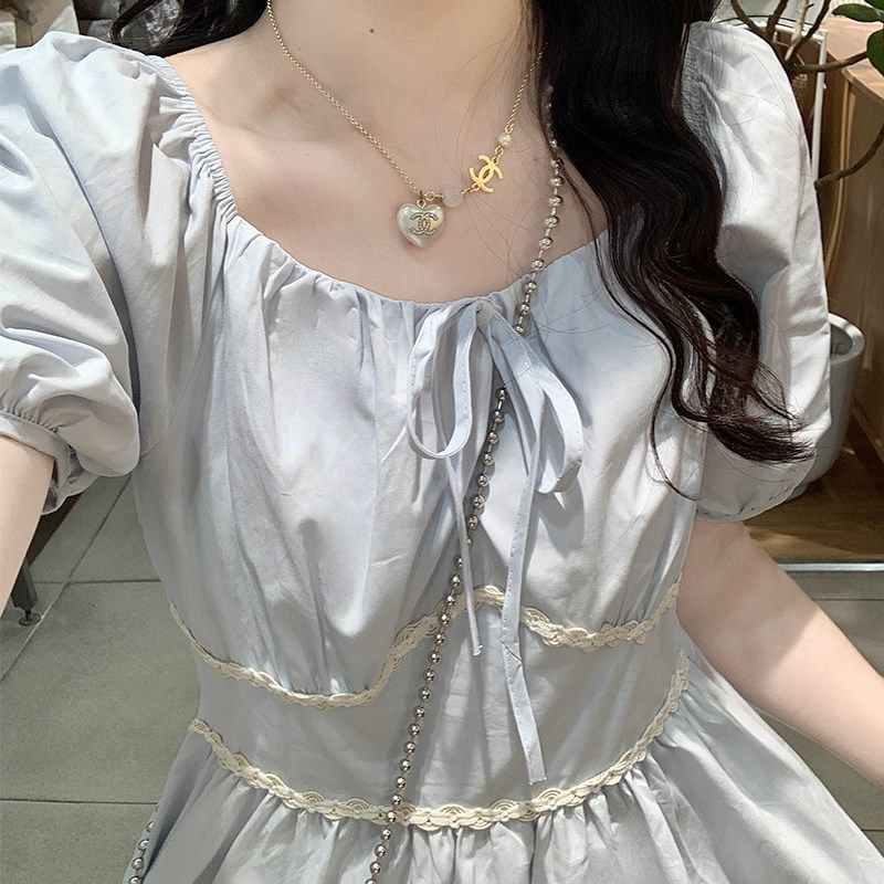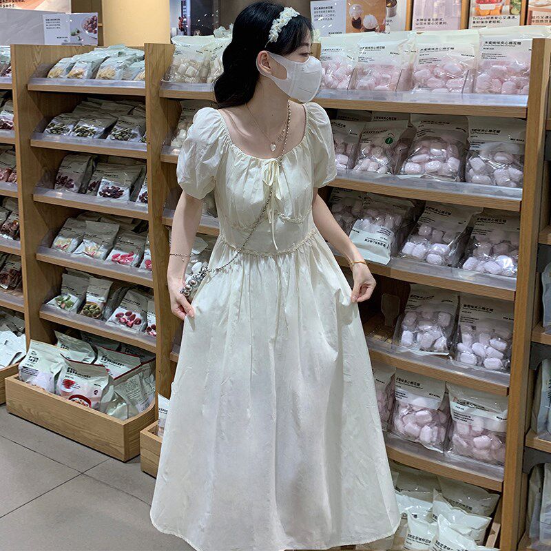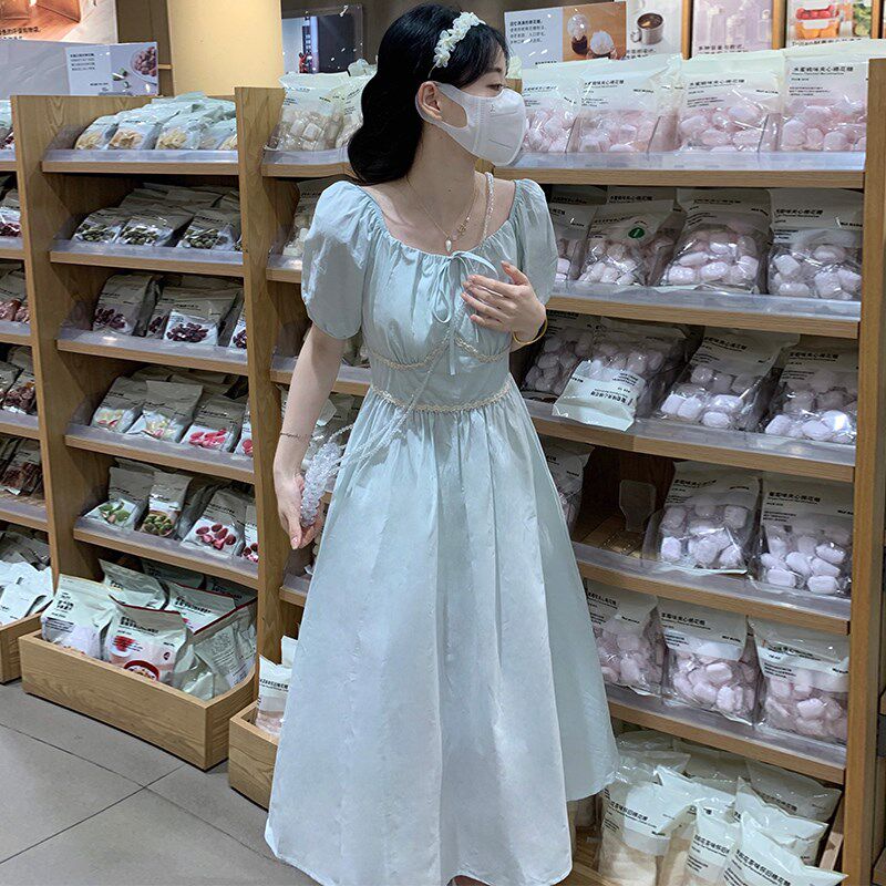 初中女生甜美休闲中长裙夏2024新款高中学生清新洋气温柔风连衣裙