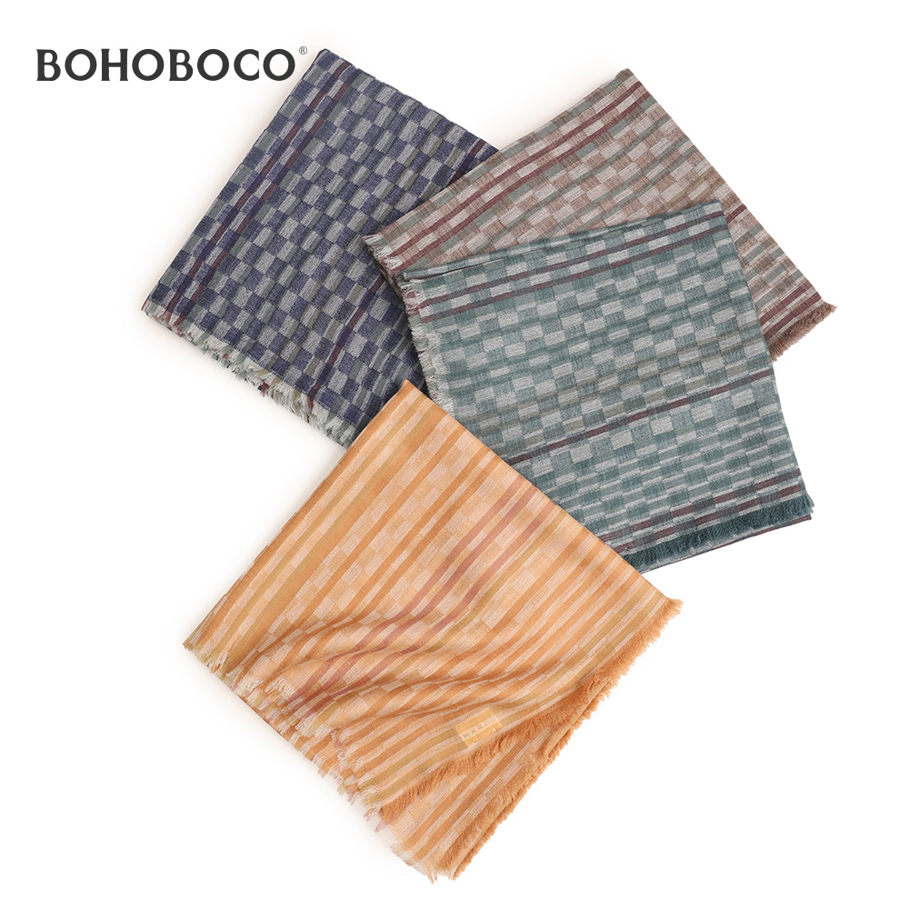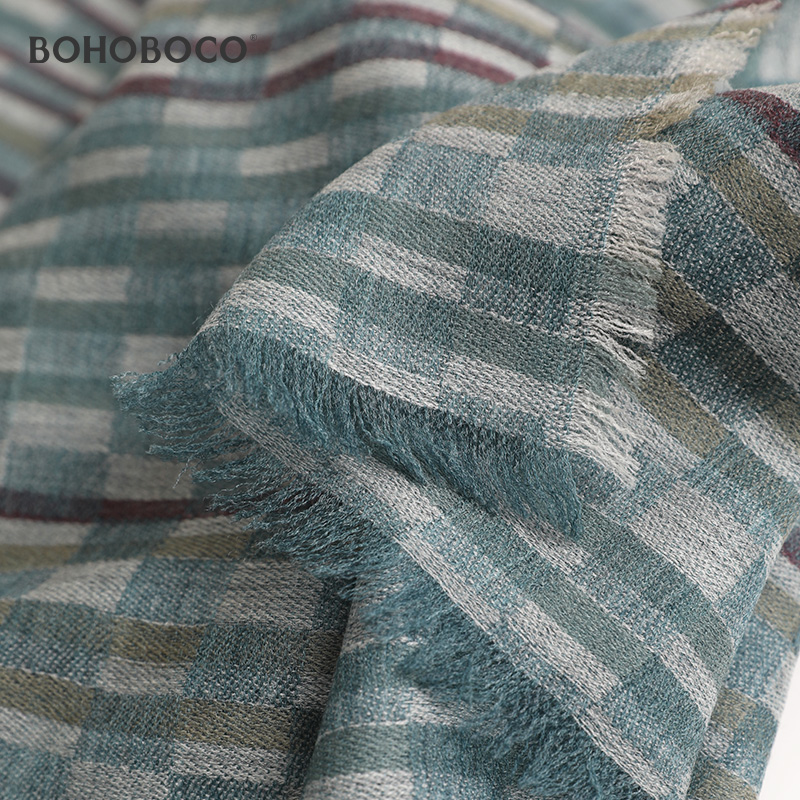 BOHOBOCO纯羊毛轻薄款方巾女秋冬季围巾旅行空调房格子披肩