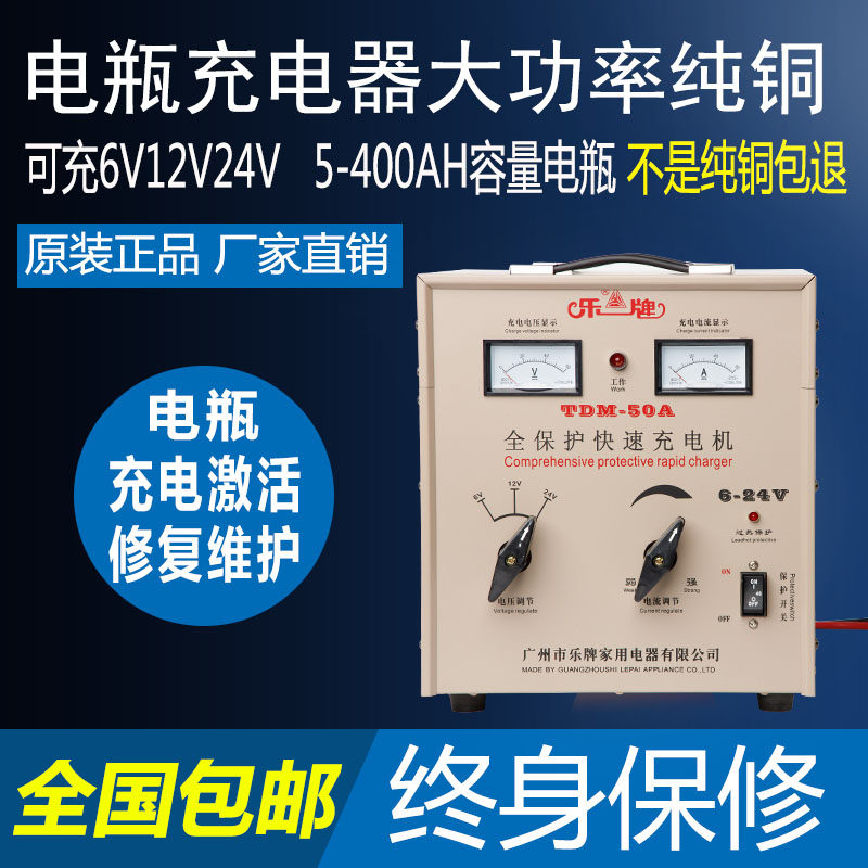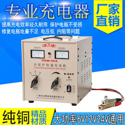 12V24V大功率充电器50A汽车货车船用电瓶激活修复纯铜乐牌充电机