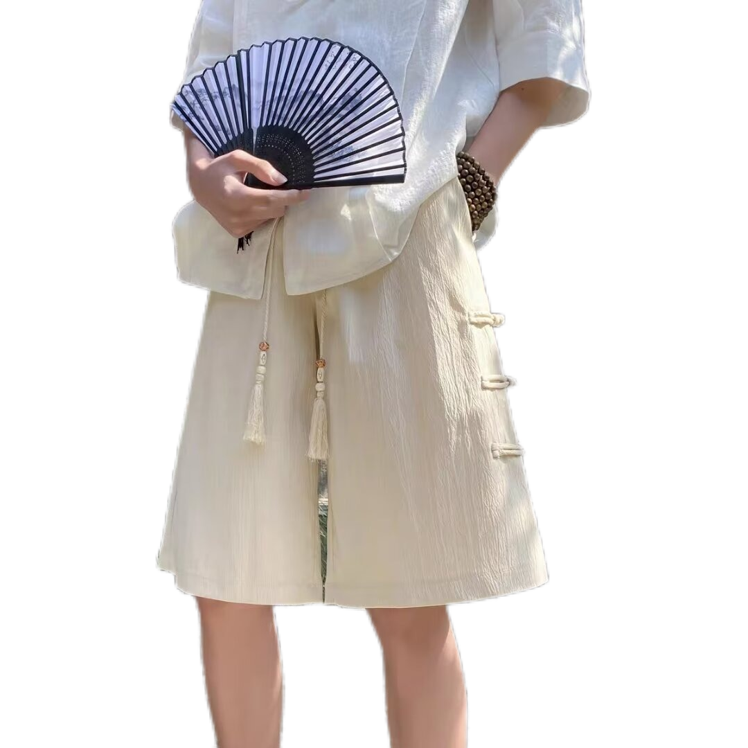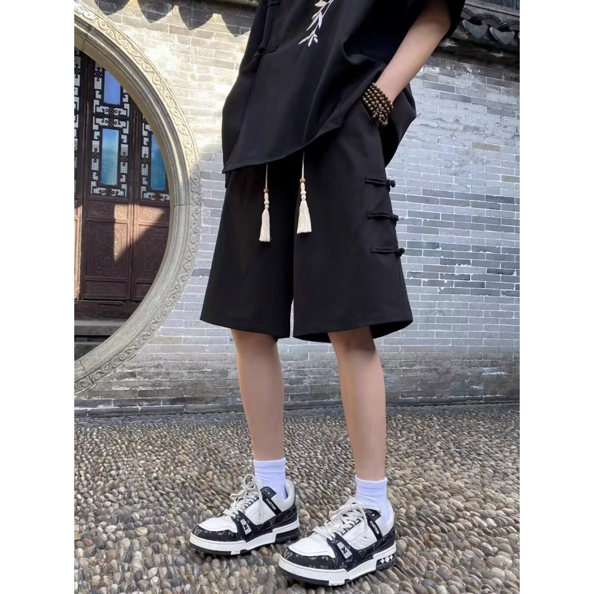 新中式国风短裤男夏季薄款透气宽松大码休闲中裤冰丝凉感五分裤子