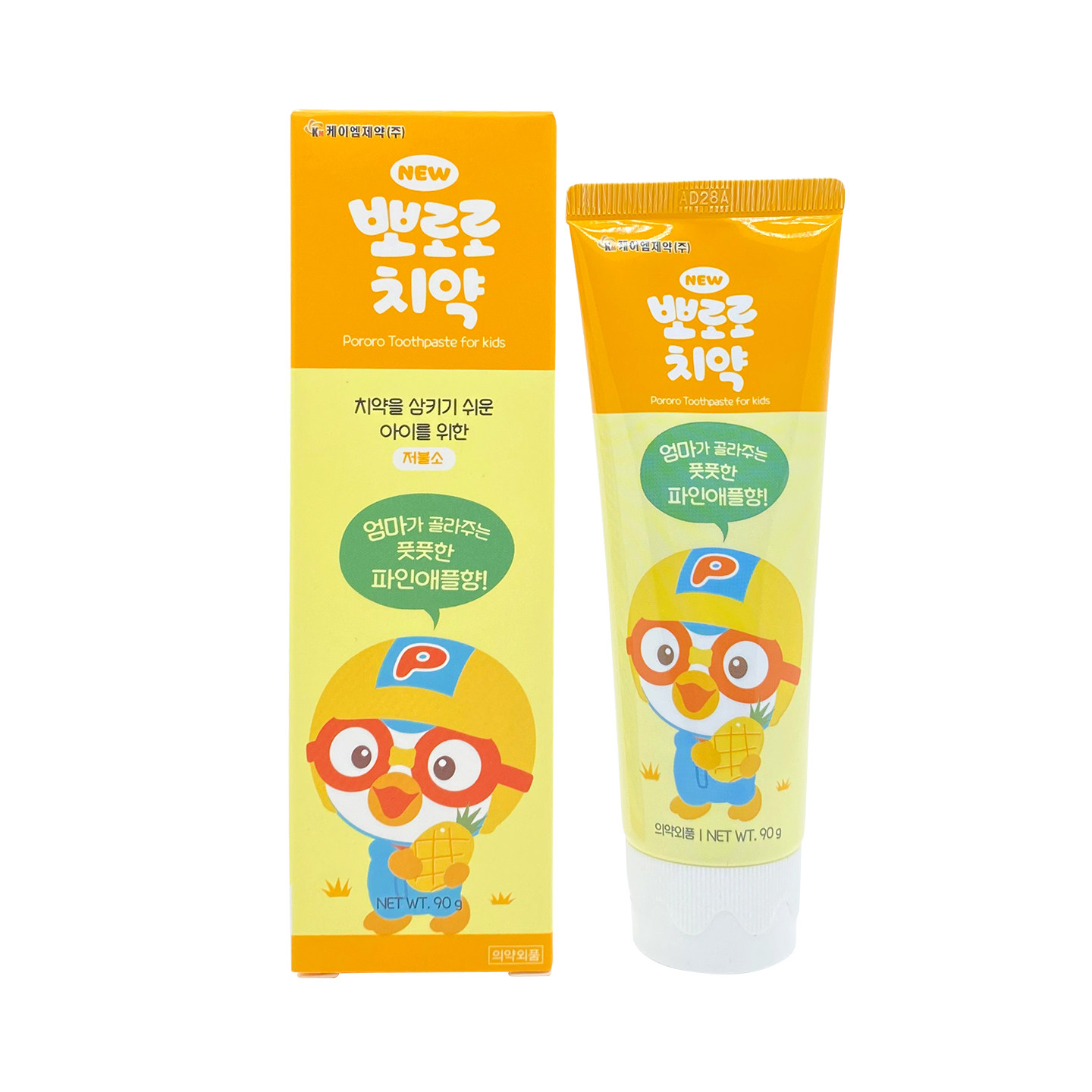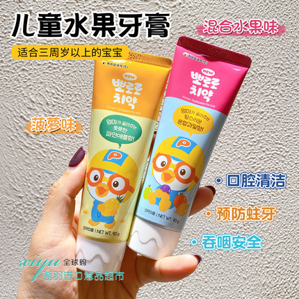 韩国Pororo啵乐乐宝露露儿童宝宝牙膏小孩水果味菠萝味低氟3-12岁