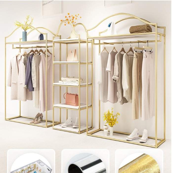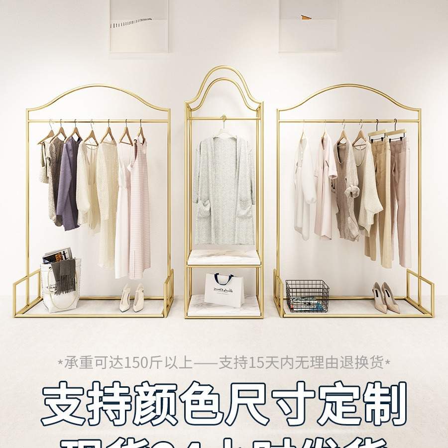 服装店展示架陈列架落地式双层货架衣架女装店金色挂衣架服装架子