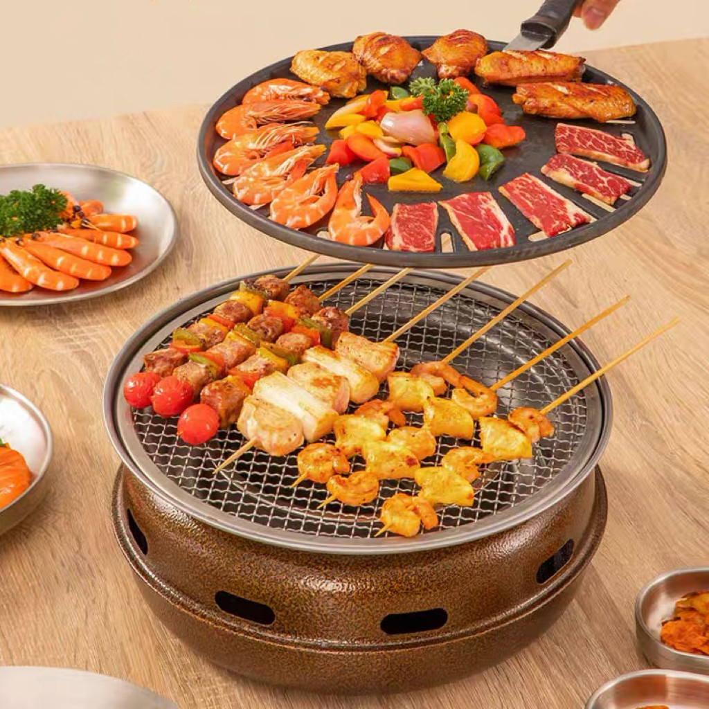围炉煮茶韩式家用烧烤炉室内无烟碳烤炉子套装商用户外木炭烤肉炉