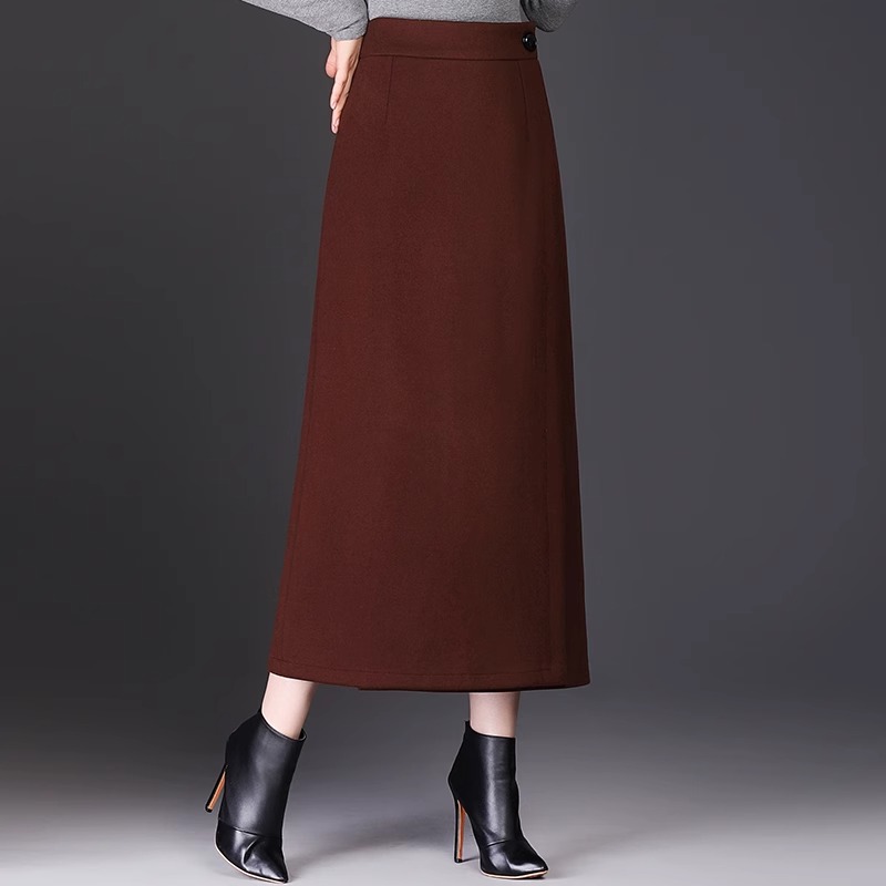 一片式毛呢半身裙女春秋款高腰显瘦包臀裙开叉时尚红色直筒一步裙