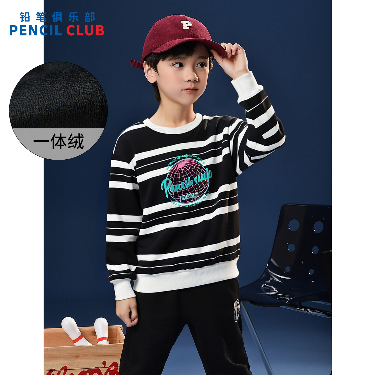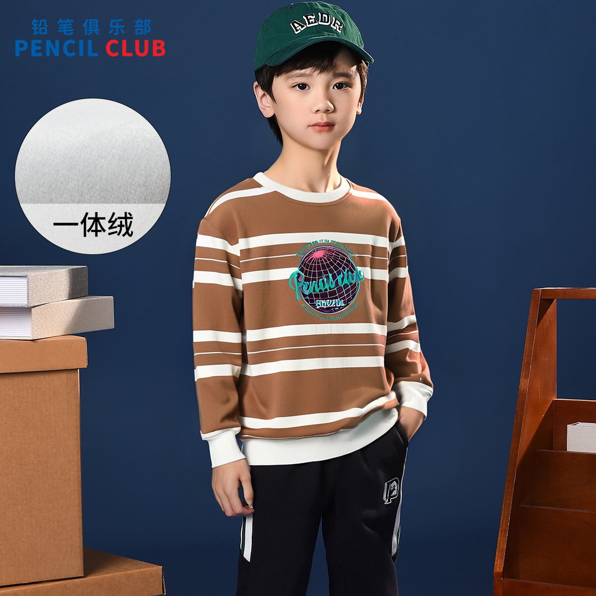 铅笔俱乐部2025秋冬新款男童卫衣中大童加绒加厚T恤儿童保暖上衣