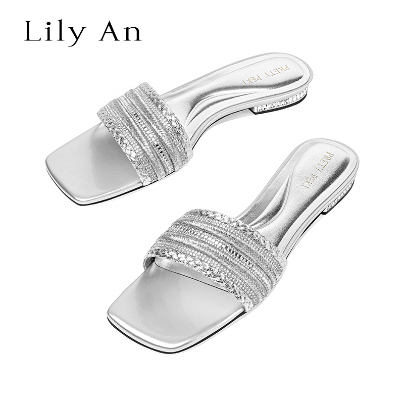 【Lily An x 水晶跟】水钻高跟露趾拖鞋女夏季外穿粗跟方头凉拖鞋