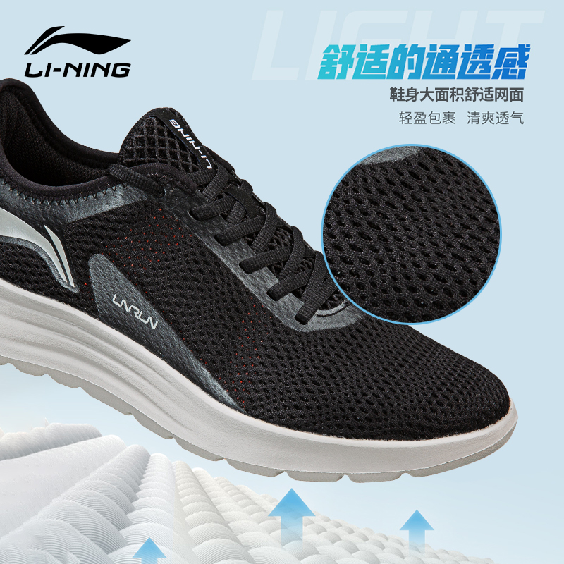 李宁运动鞋男鞋2025夏季新款透气网面男士休闲鞋轻便减震跑步鞋子