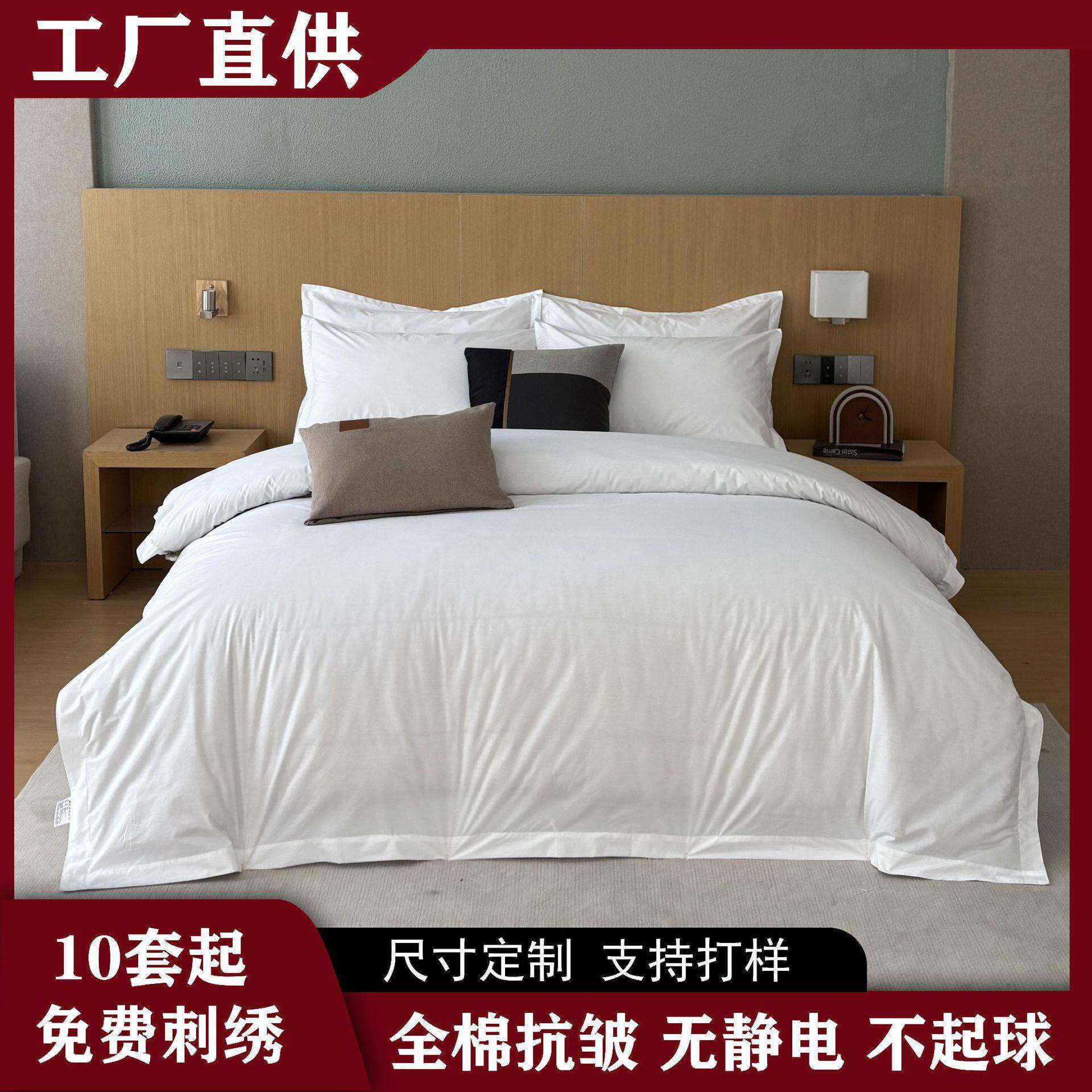 店专用70棉全四件套抗皱耐洗宾套件白色酒床单被套馆民宿三件套棉